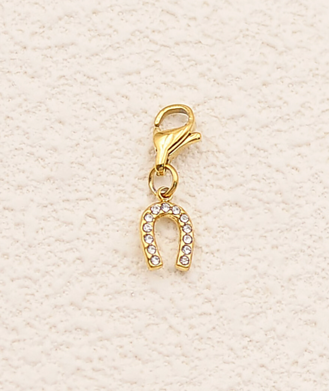 Charm en acier inoxydable composé d'un pendentif fer à cheval orné d'oxydes de zirconium.