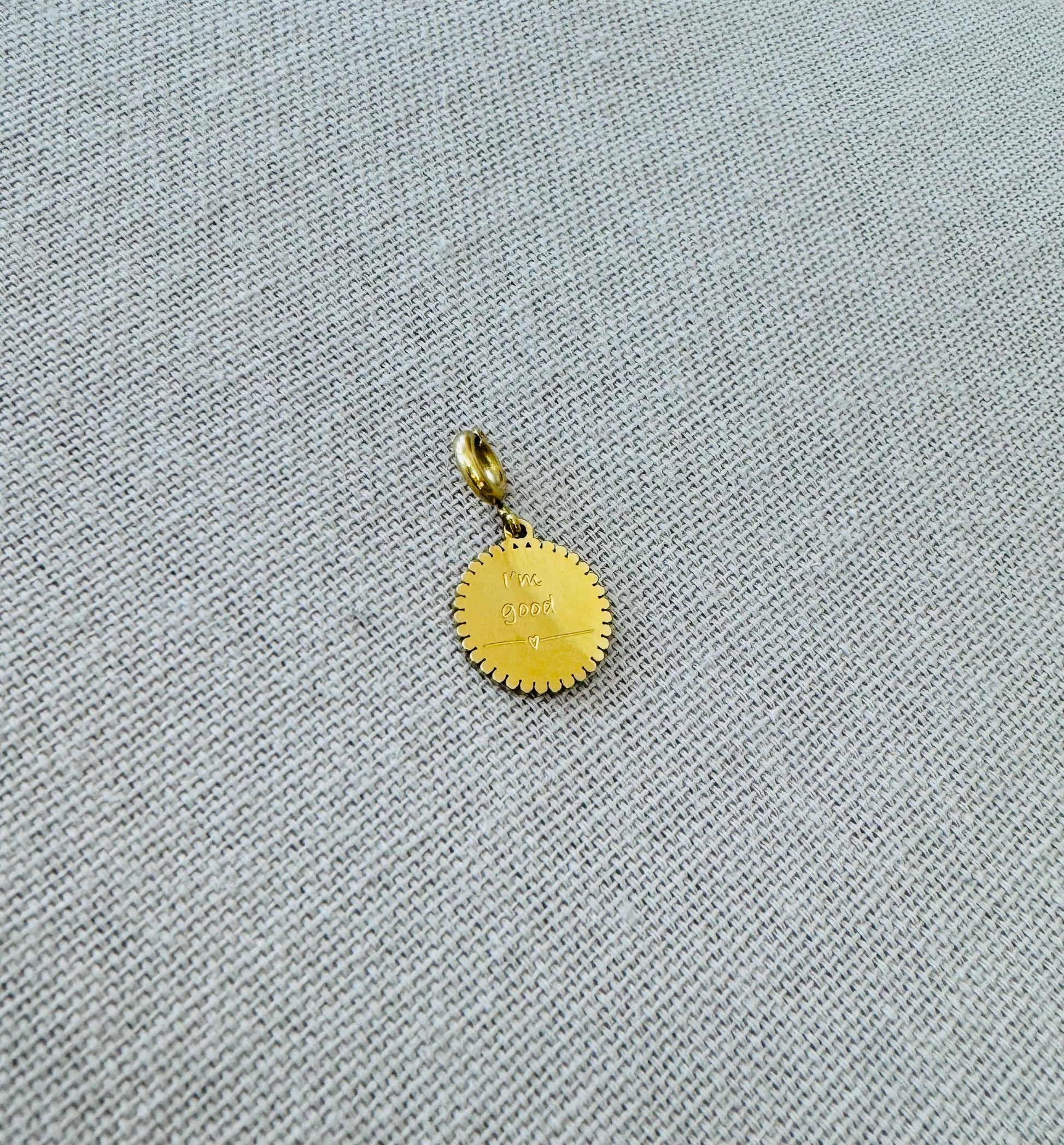 Médaillon inscription "I'm good" gravé.