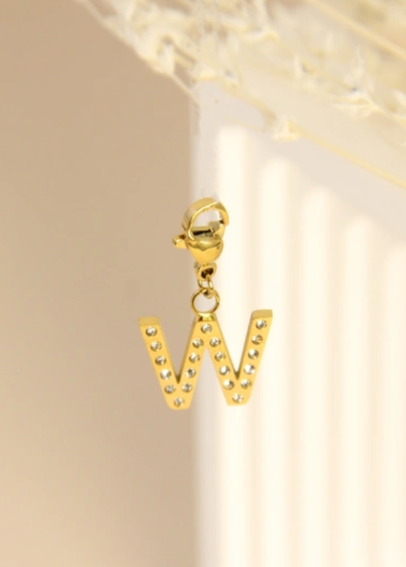 Charm's alphabétique orné de strass avec attache mousqueton en acier inoxydable.